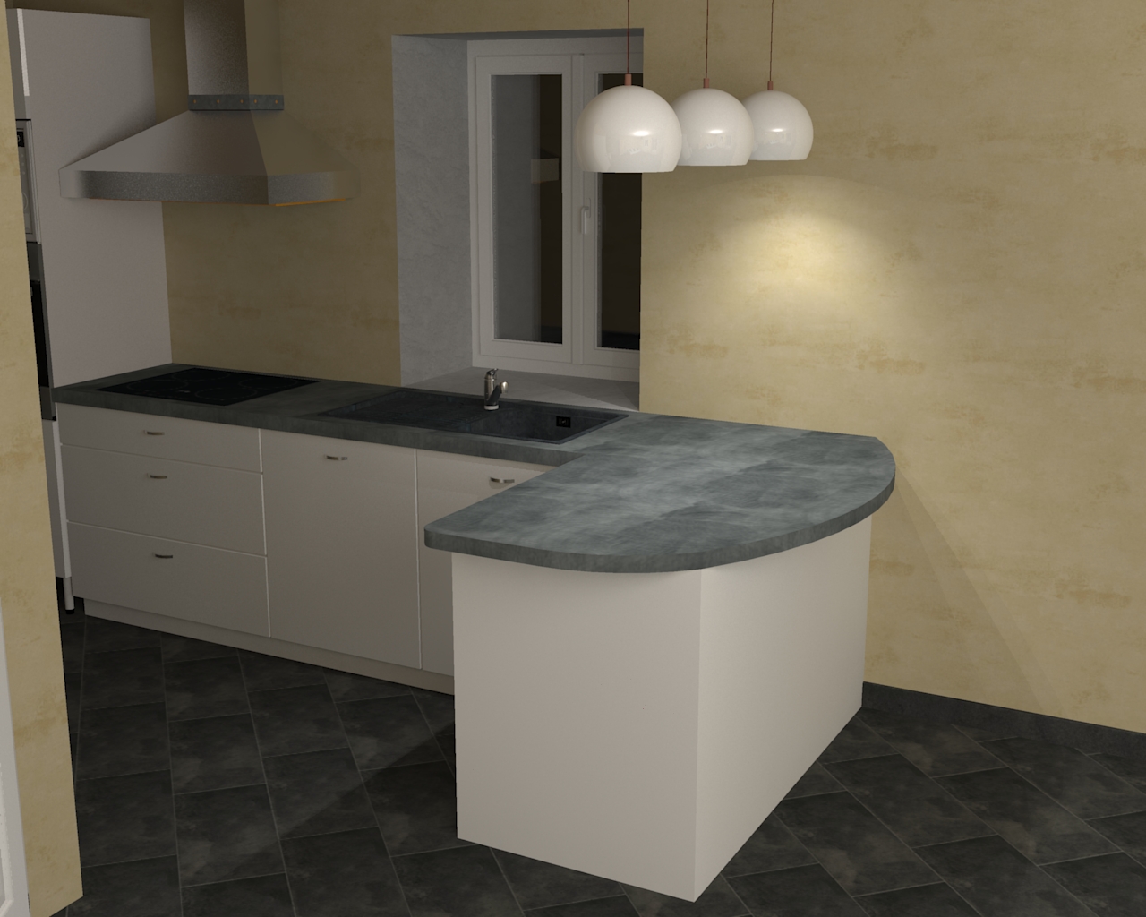 et dans le meme tons de couleurs. mais moi c'est pas avant l'an prochain je pense. sinon je pense aussi que la fenetre rectangulaire serait superbe et enlever aussi le meuble haut. Je sais les meubles haut c'est toujours pratique mais peut etre qu'un rideau integré aussi dans le mur a coté colonne four serait pas mal .