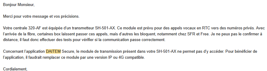 Questions multiples sur une alarme DAITEM