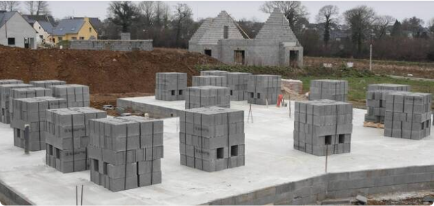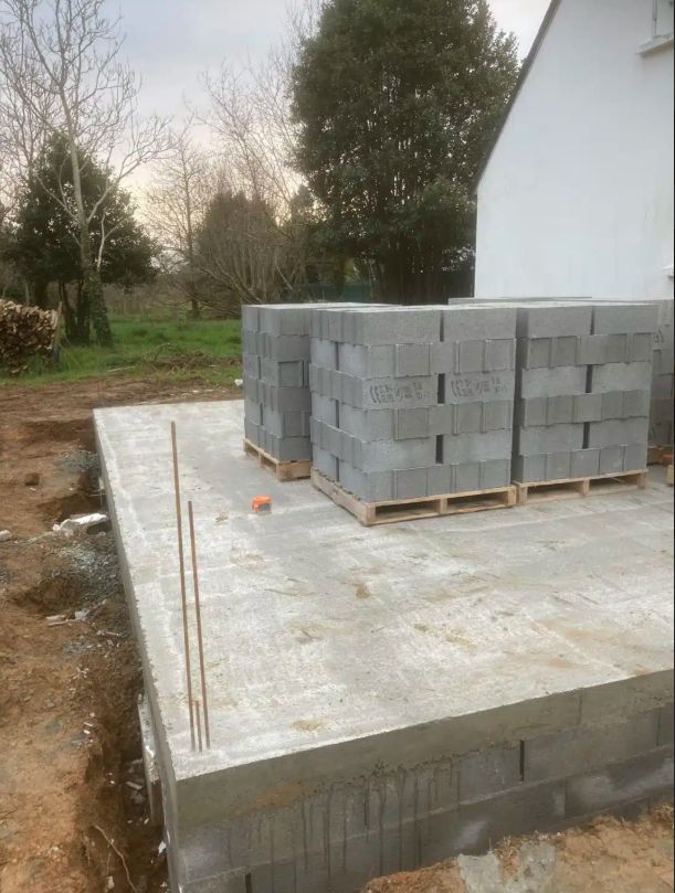 Dalle coulée et palette de bloc beton dessus
