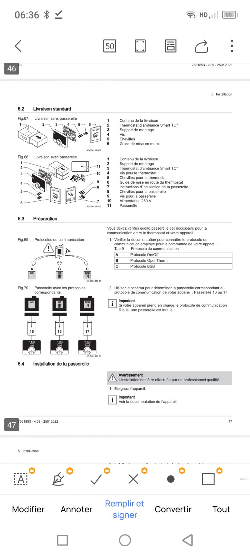 Alimentation thermostat connecté - Chaudière Saunier Duval Themaplus C24 EV