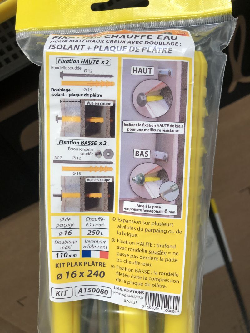 Fixation parpaings creux chauffe eau