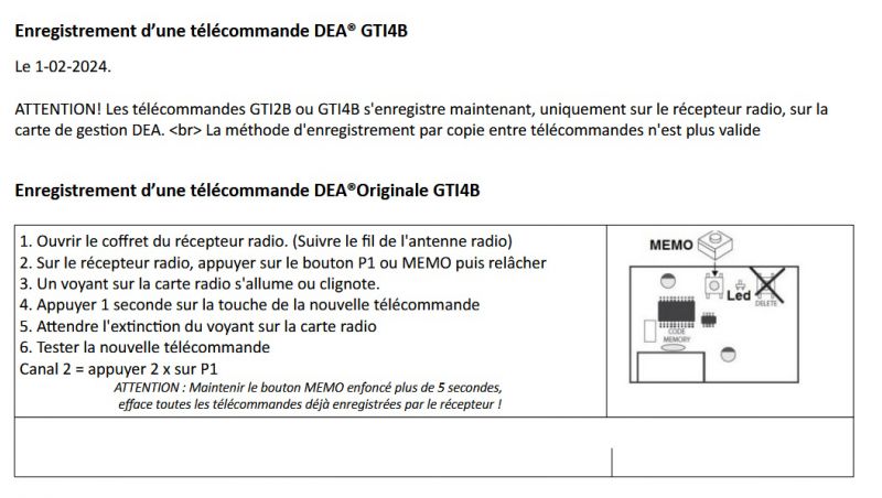 Appairage nouvelle télécommande DEA portail GEKO