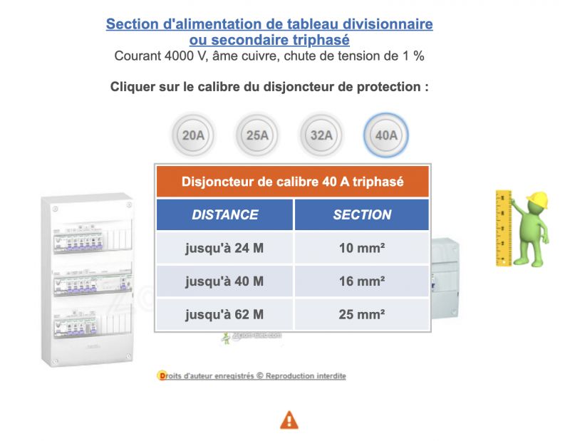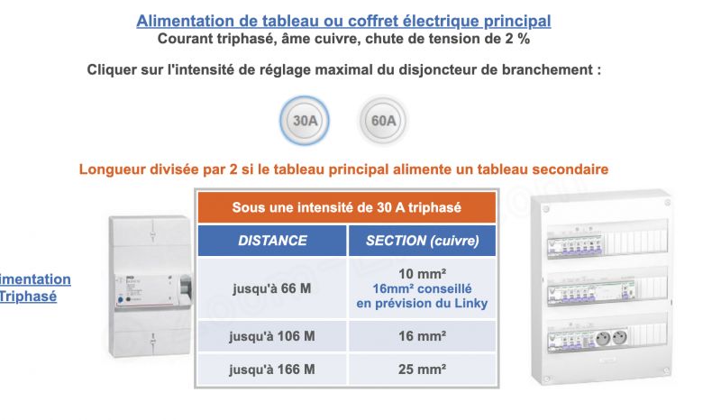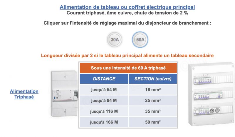 Tableau secondaire à 40m en triphasé, quelle section utiliser ?