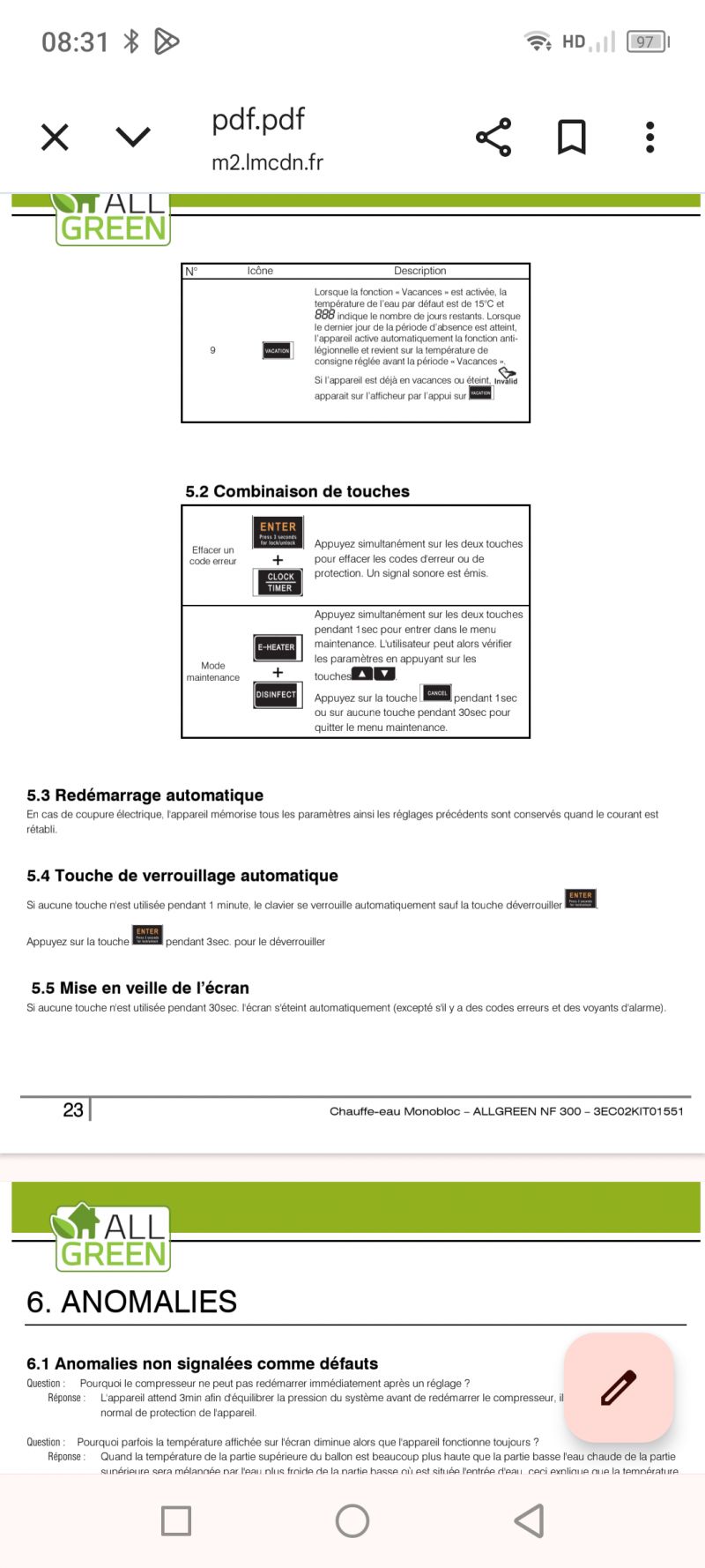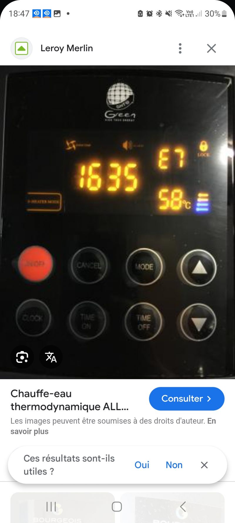 Chauffe eau thermodynamique GHT , Problème d'écran