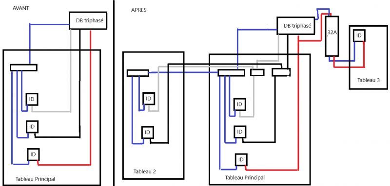 Nouveau tableau en triphasé (abonnement 18 kVA, 30A)