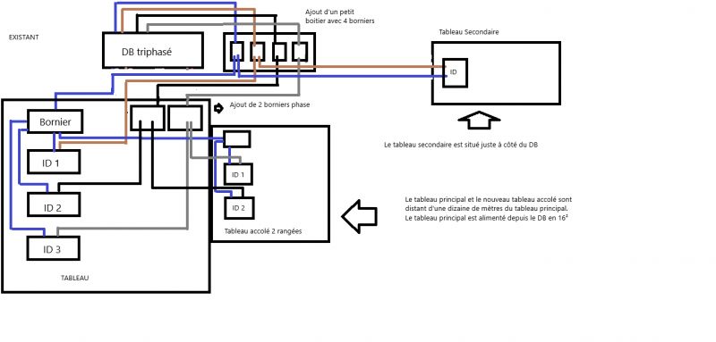 Comment bien réaliser l'ajout de deux tableaux supplémentaires sur une installation triphasé fonctionnant en monophasé ?