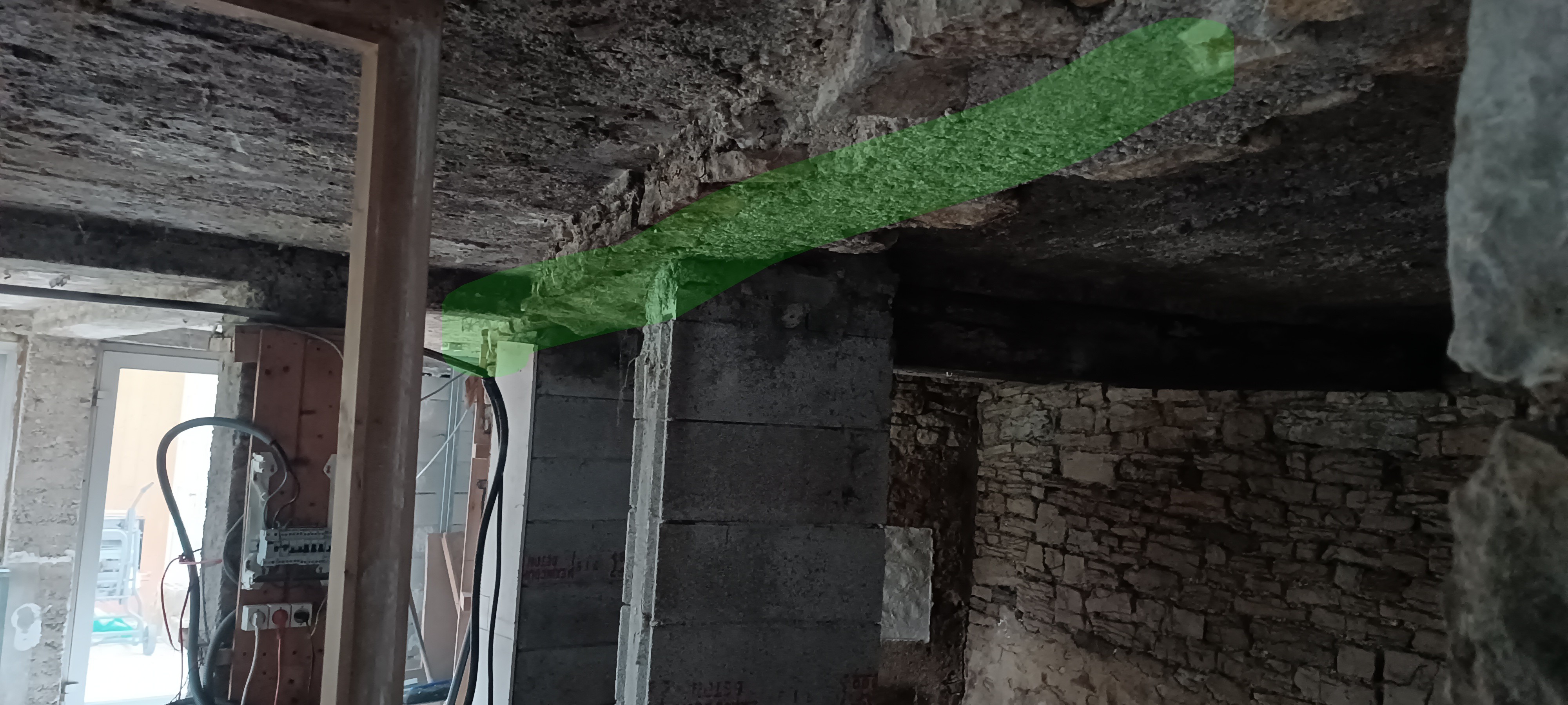 Découpe mur pierre pour ouverture sur mur porteur