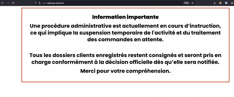Suspension d'activité national-cloture.fr : collectif créanciers