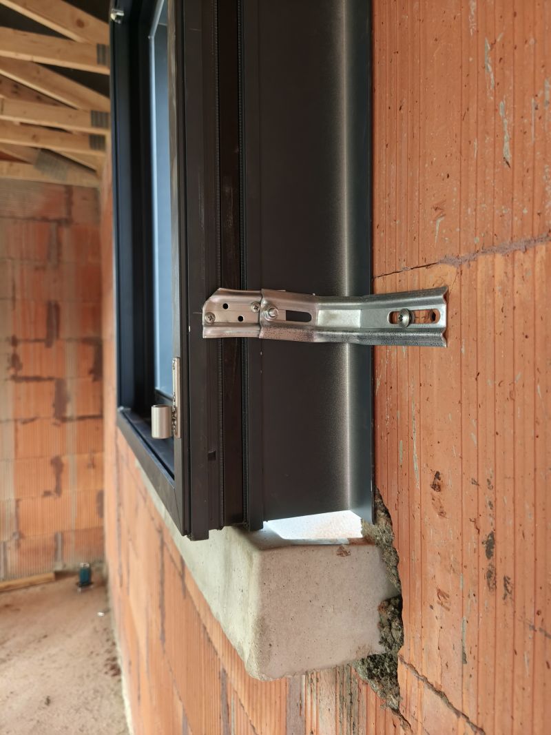 Ouverture entre fenêtre en applique alu et appuis fenêtre en beton
