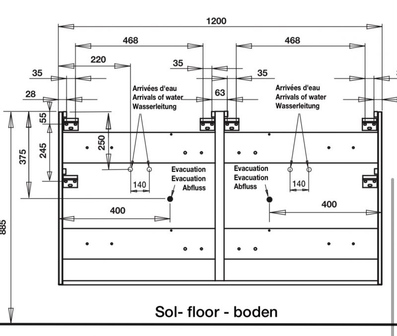 Fixation meuble de salle de bain