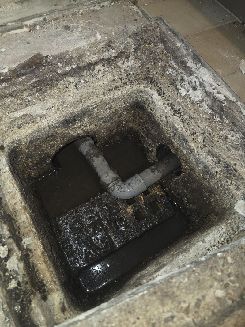 Regards dans le garage et évacuations bizarres et regards humides voir toujours partiellement avec de l eau