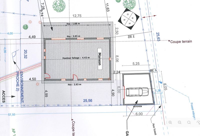 - Un fossé se trouve juste derrière, aujourd'hui une bande de 5m de chaque coté du fossé (PLU actuel) empêcherait la construction de ce garage mais en 2014 ceci a été accepté par la mairie. (Garage présent sur le PC)