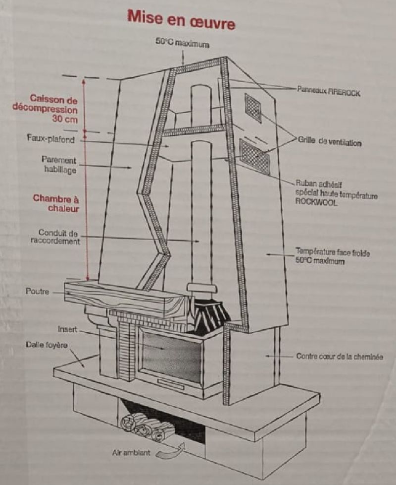 Caisson de décompression pour hotte de cheminée avec insert