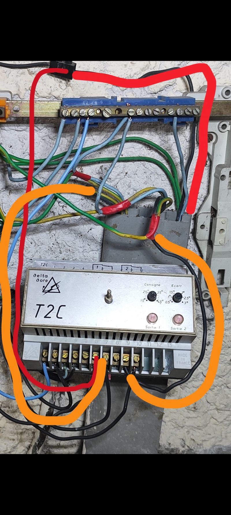 Branchement vieux thermostat sur boitier Delta Dore T2C