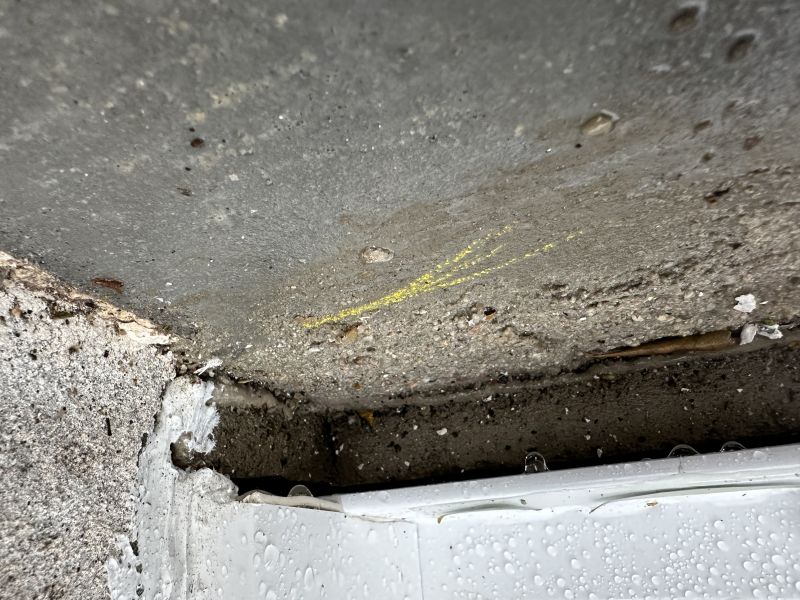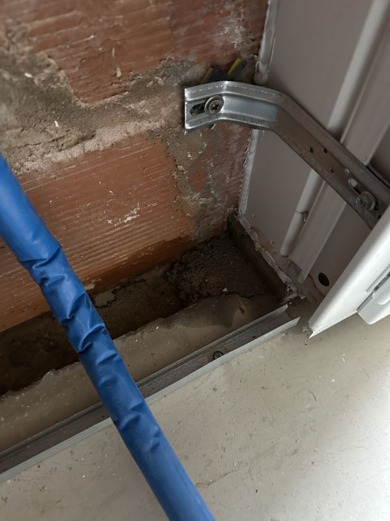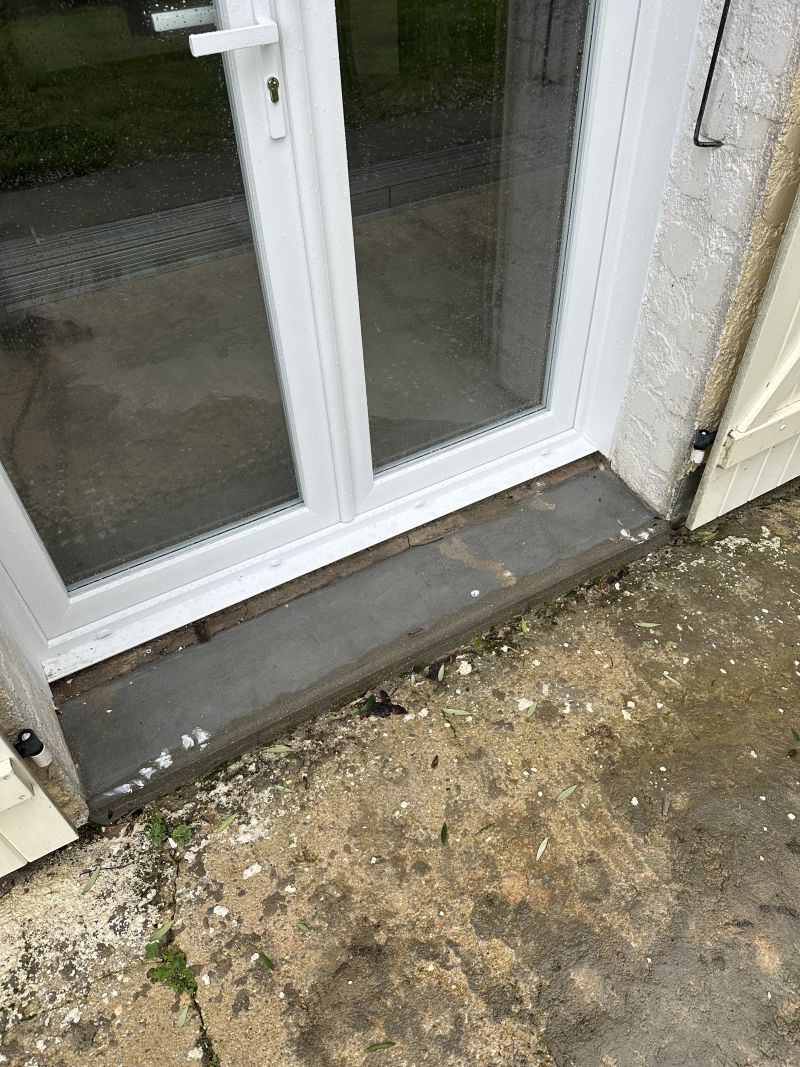 Espace vide de plusieurs centimètres entre porte-fenêtre / baie et seuil en béton