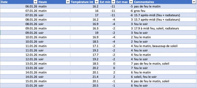 Les 07-08 janvier on a fait 2 fournées par jour de 20 KG. En plus on avait allumé les 2 radiateurs à huile qu'on a (1500 W, 1000 W).