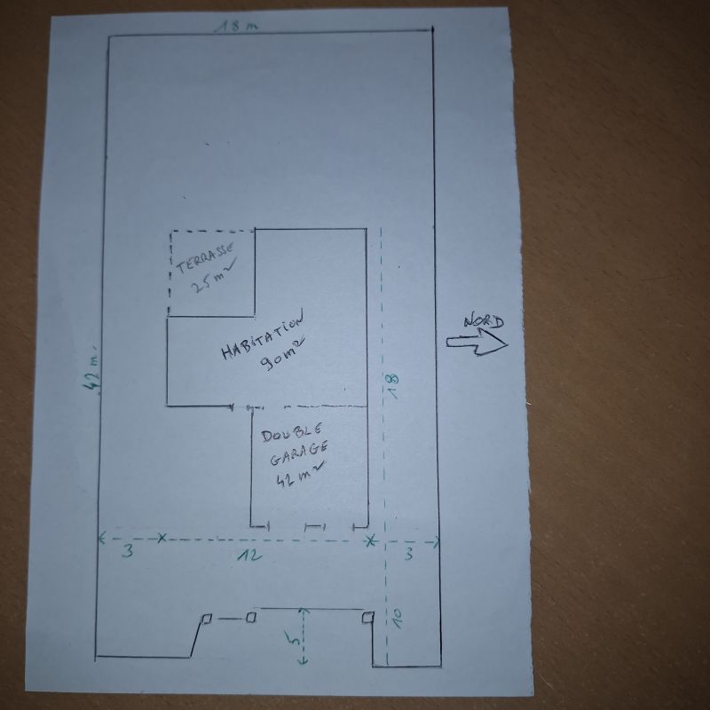 Implantation idéale maison et atelier sur terrain largeur 18m