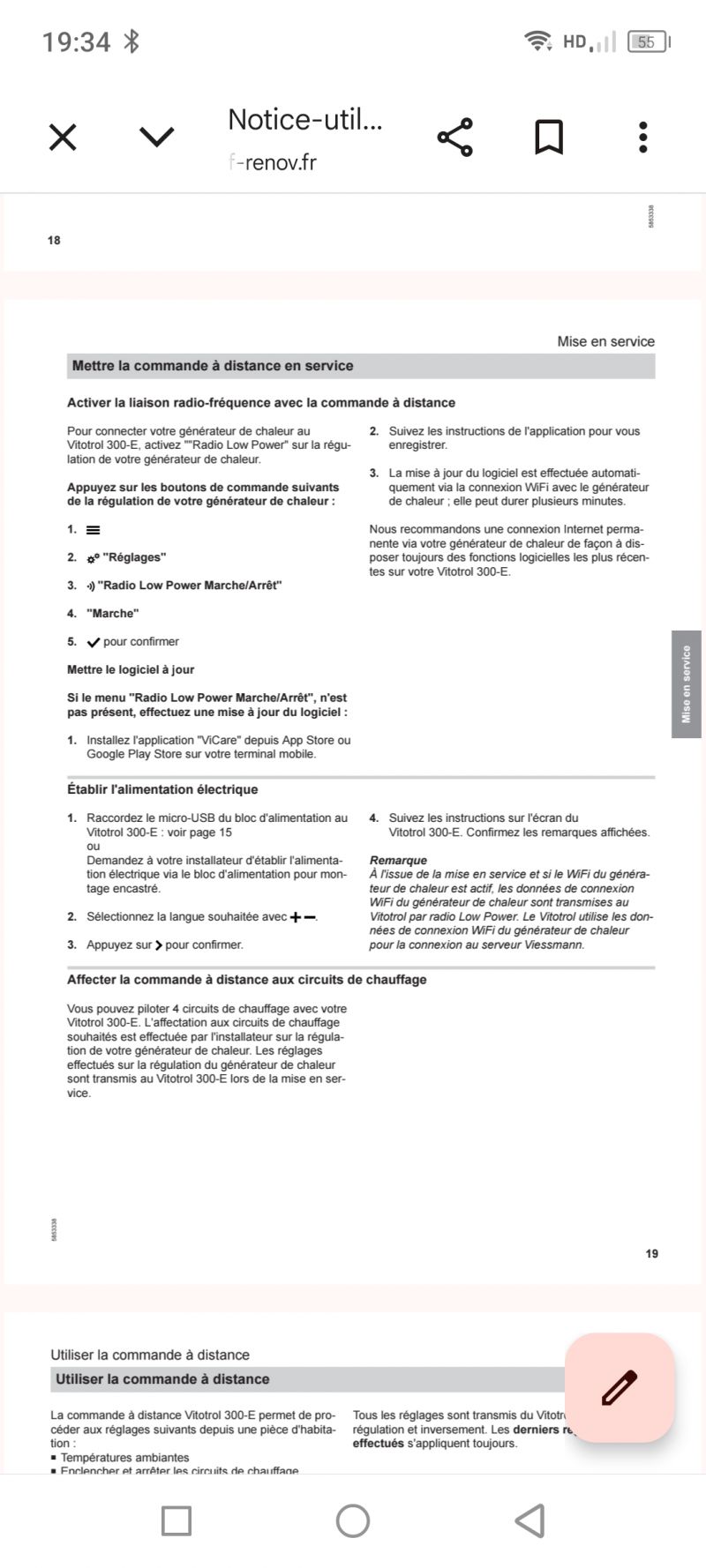 Impossible d’affecter un Vitotrol 300-E au circuit 1 sur Vitodens 222-W – erreur serveur ViCare