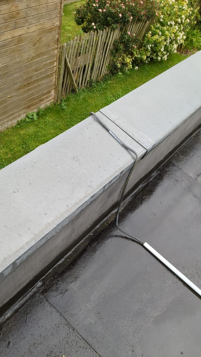 Normalement, ce câble devrait être fixé sur le mur de la terrasse. Et faire le tour !