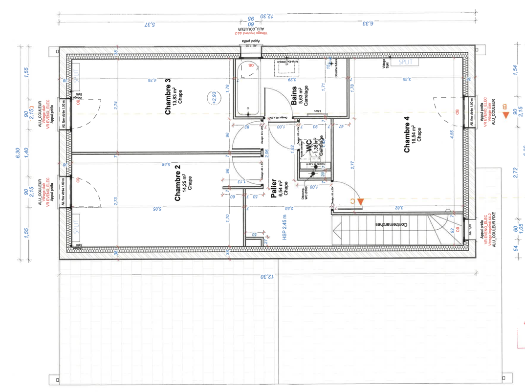 Plan 104M² 4 chambres combles aménageables