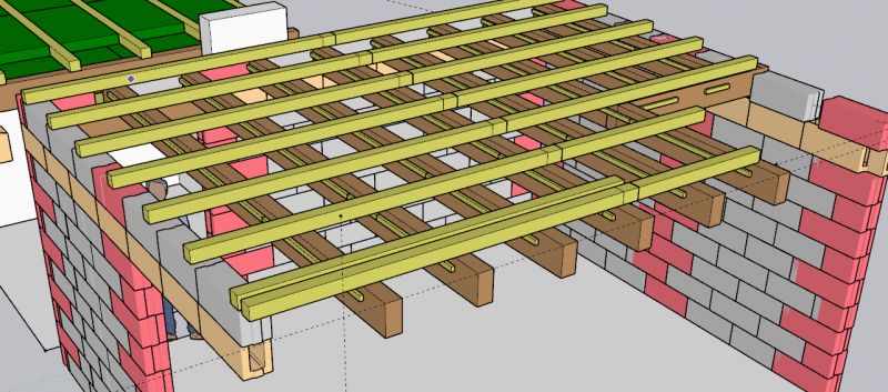 Aide conception toit plat bac acier sur carport et atelier en ossature bois.