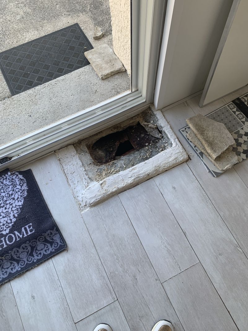 Regard eaux usées à l’intérieur de la maison (dans un ancien garage transformé en pièce de vie)