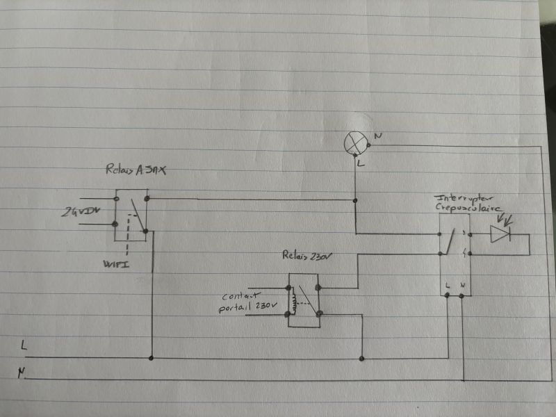 Branchement relais éclairage extérieur sur moteur portail