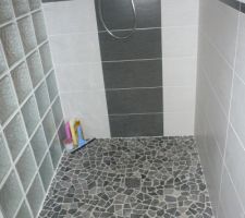 Carrelage de la SDB terminé. Frise de la douche
