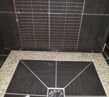 Carrelage de la SDB terminé. Douche avec caniveau