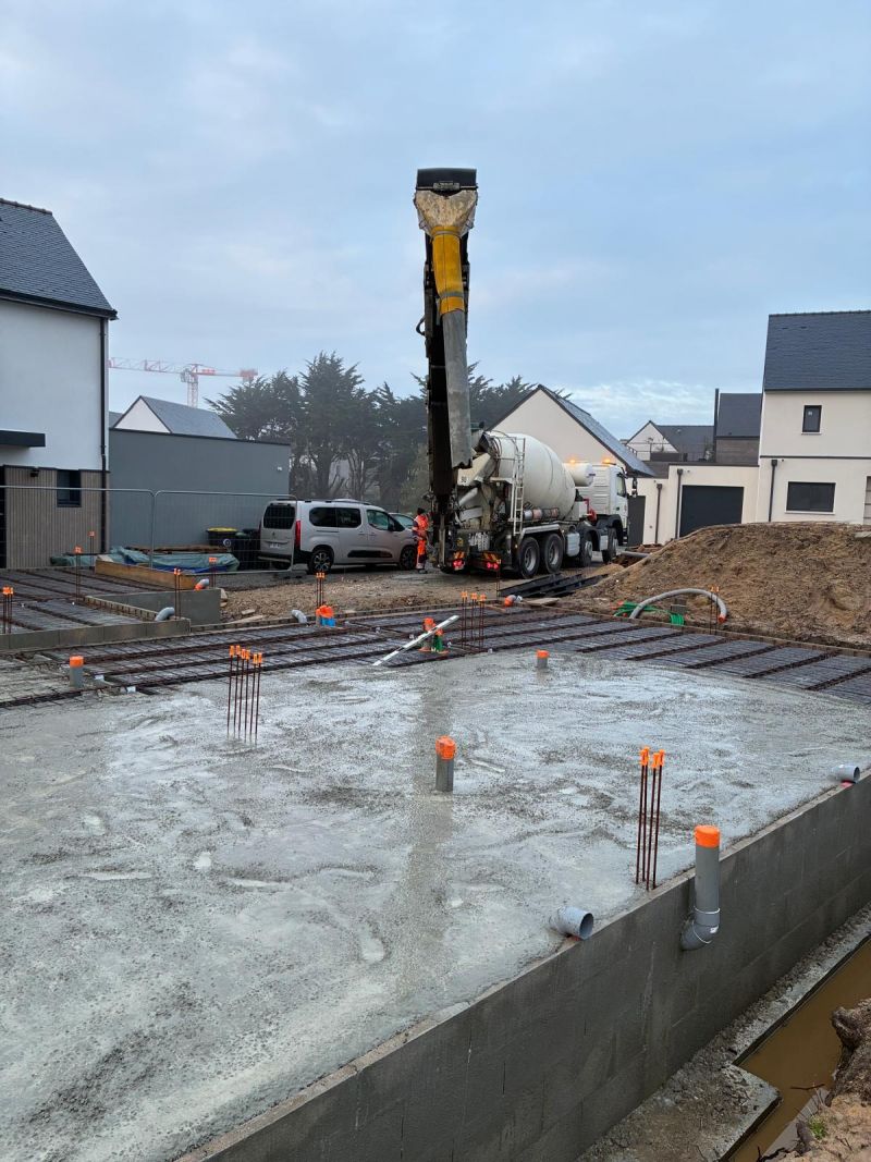 Les dalles ont ensuite été coulées, et là, on a vraiment commencé à se projeter. Pour la première fois, on peut se tenir “dans” la maison, deviner les volumes et imaginer les futures pièces. Le projet devient réel, ça fait quelque chose.